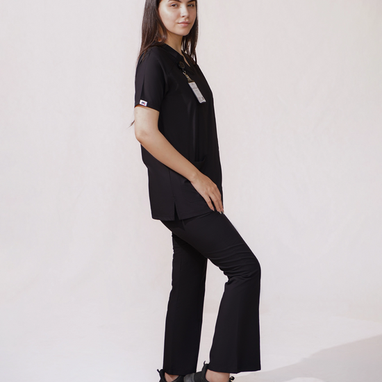 Designed for modern healthcare professionals, the MedFit™ Rever Women Bottom offers a perfect blend of elegance, comfort, and functionality. Specially crafted for women scrubs, this bell-bottom trouser delivers a polished, professional look while ensuring ease throughout long shifts.